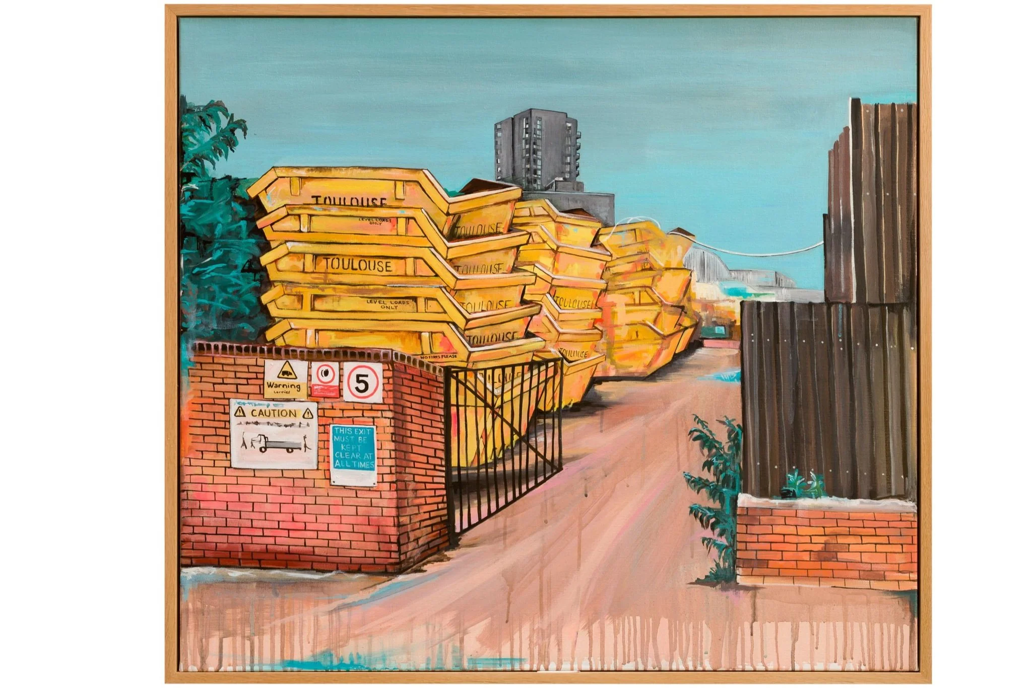 Piles of skips in the yard. Originally the subject of ‘Too Much Toulouse’ created for ‘In The Mean Time’ Ten years later, this skip yard remains the same, as high rises build around, skips loaded with the debris of the old buildings and earth. Waiting to be filled again. Level loads only.